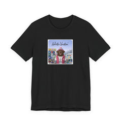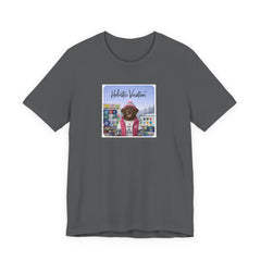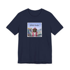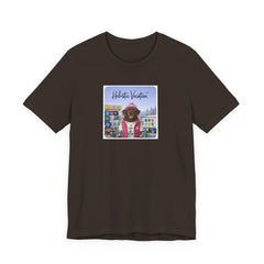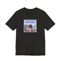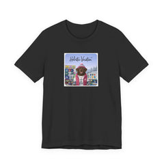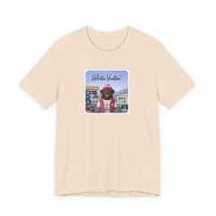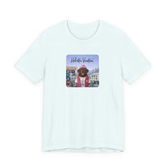 Soft, breathable tee featuring a whimsical, colorful front print of a dog in vacation gear set against a vintage arcade/board backdrop. Lightweight Airlume cotton feels cool on the skin and drapes cleanly thanks to side seams and a retail fit. The ribbed crew collar and shoulder tape keep the shape after repeated wear, while the tear-away label prevents irritation. Subtle, rich printing reproduction gives the artwork vivid detail and a slightly lived-in, nostalgic vibe — great for easy weekends, sunny market strolls, or casual meetups where you want a playful, personal touch to your outfit.