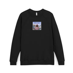 This cozy raglan sweatshirt carries a calm, thoughtful energy — like a slow city morning with a warm drink in hand. The graphic on the chest shows a contemplative figure framed by a soft skyline, giving the piece a quietly artistic feel. Midweight fleece keeps you warm without feeling bulky; raglan sleeves and a relaxed cut let you move freely. Wear it on chilly commutes, studio days, or evenings wandering the neighborhood. The understated black body makes the art pop while staying easy to layer under a coat or over a shirt. It settles into your rotation as a comfortable, wearable canvas that nods to creative routines and small rituals.