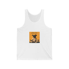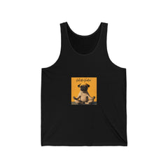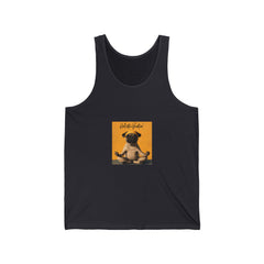 Honor your vocation Pug Meditation Tank Top — "Hello, Happiness" Graphic Cotton Jersey Tank